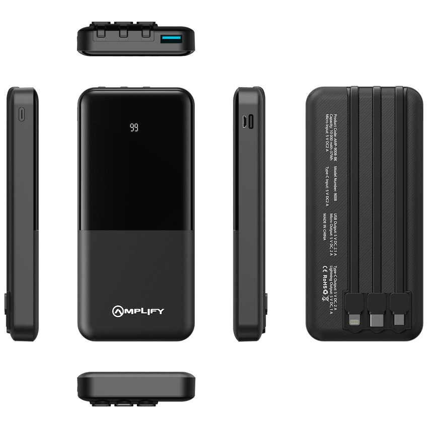 Amplify 10000mAh Power Bank with Integrated Cables...