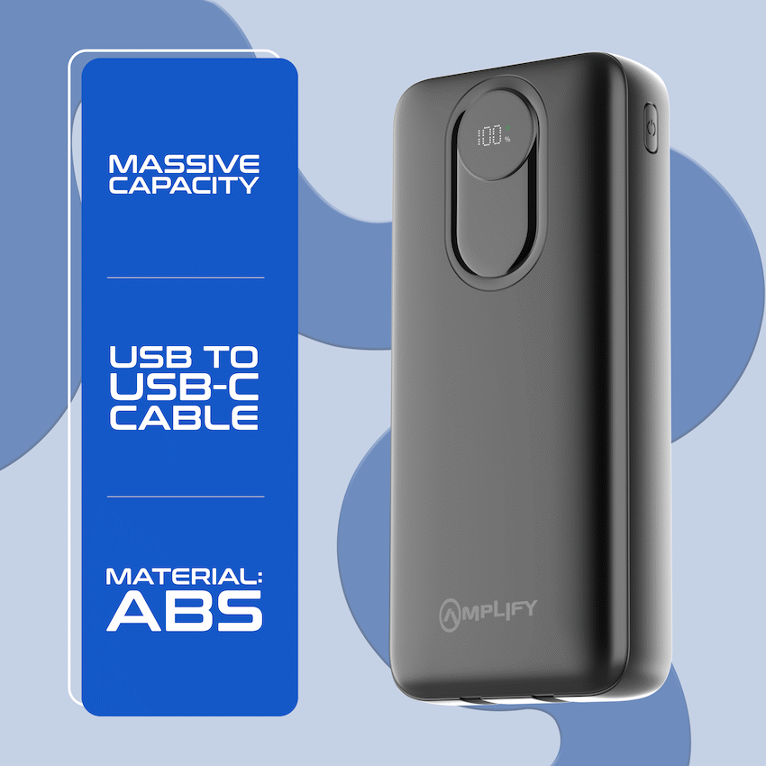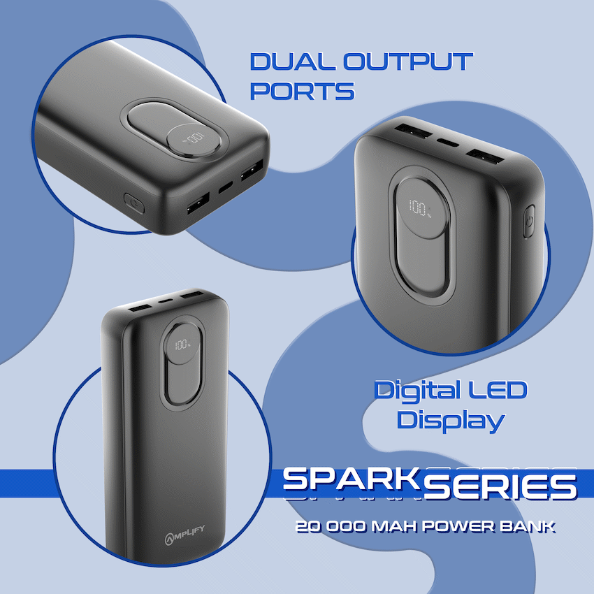 Power through your day with the Amplify Spark 20000mAh Series Power Bank. With a massive 20,000mAh capacity, dual output ports (USB and Type-C), and a clear digital LED display, this power bank keeps your devices charged and ready. Built from durable ABS material and paired with a USB to USB-C cable, it’s the perfect high-capacity companion for travel, work, or daily use.
