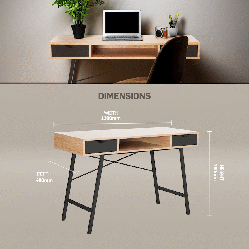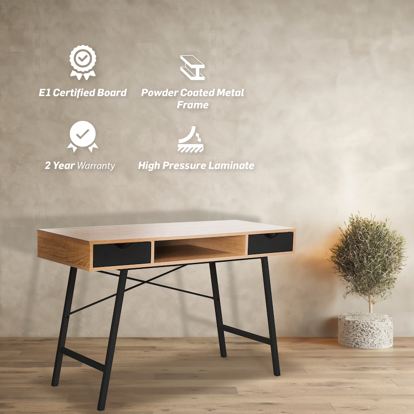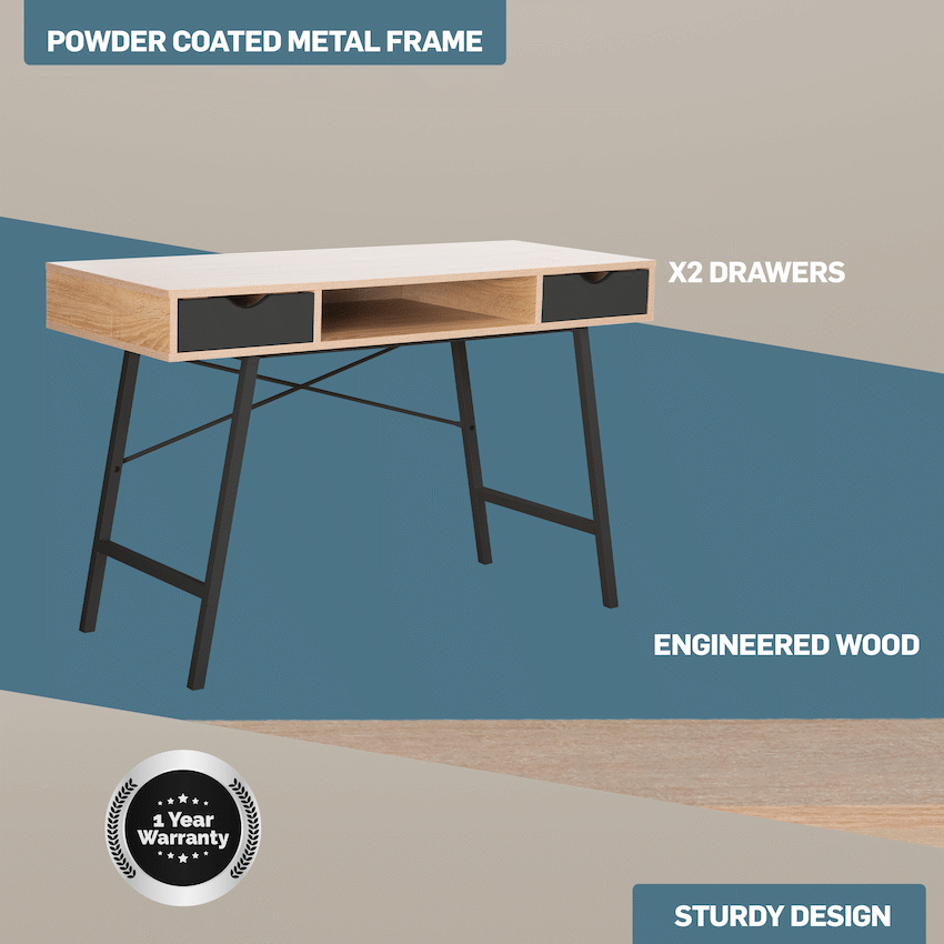 Everfurn Rain Work Desk 2, Two Drawers, Steel Frame, Adjustable Feet, Study Desk