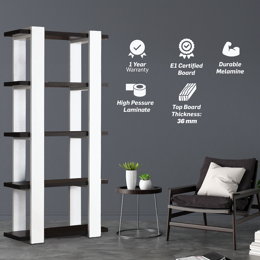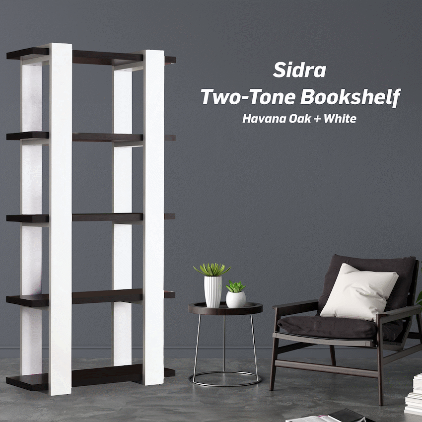 Everfurn Sidra Book Shelf, Two Tone, Paper Laminated On Particle Board