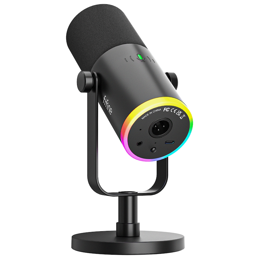 Elevate your streaming or recording setup with the Fifine AM8 NEO RGB Microphone. This dynamic desktop microphone combines both USB-C and XLR connectivity, letting you choose plug-and-play USB convenience or pro-grade XLR for future upgrades. The built-in RGB lighting offers customizable flair to suit your style, while features like real-time headphone monitoring, tap-to-mute, and gain adjustment put control right at your fingertips.Designed with creators and gamers in mind, this mic includes a stable desktop stand, classic cardioid pickup for accurate voice capture, and noise cancellation for cleaner audio. Whether you’re podcasting, streaming, conferencing, or producing voice-over content, the Fifine AM8 NEO delivers performance and polish at an accessible price.