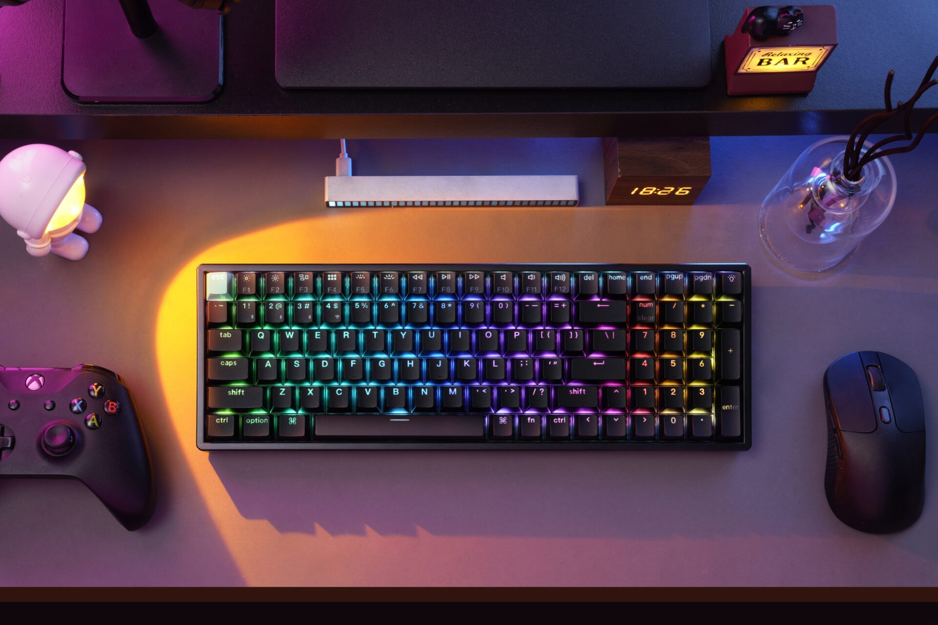 - Immerse yourself in vibrant, per-key RGB lighting, creating dynamic effects that react to your gameplay, enhancing your gaming keyboard experience.