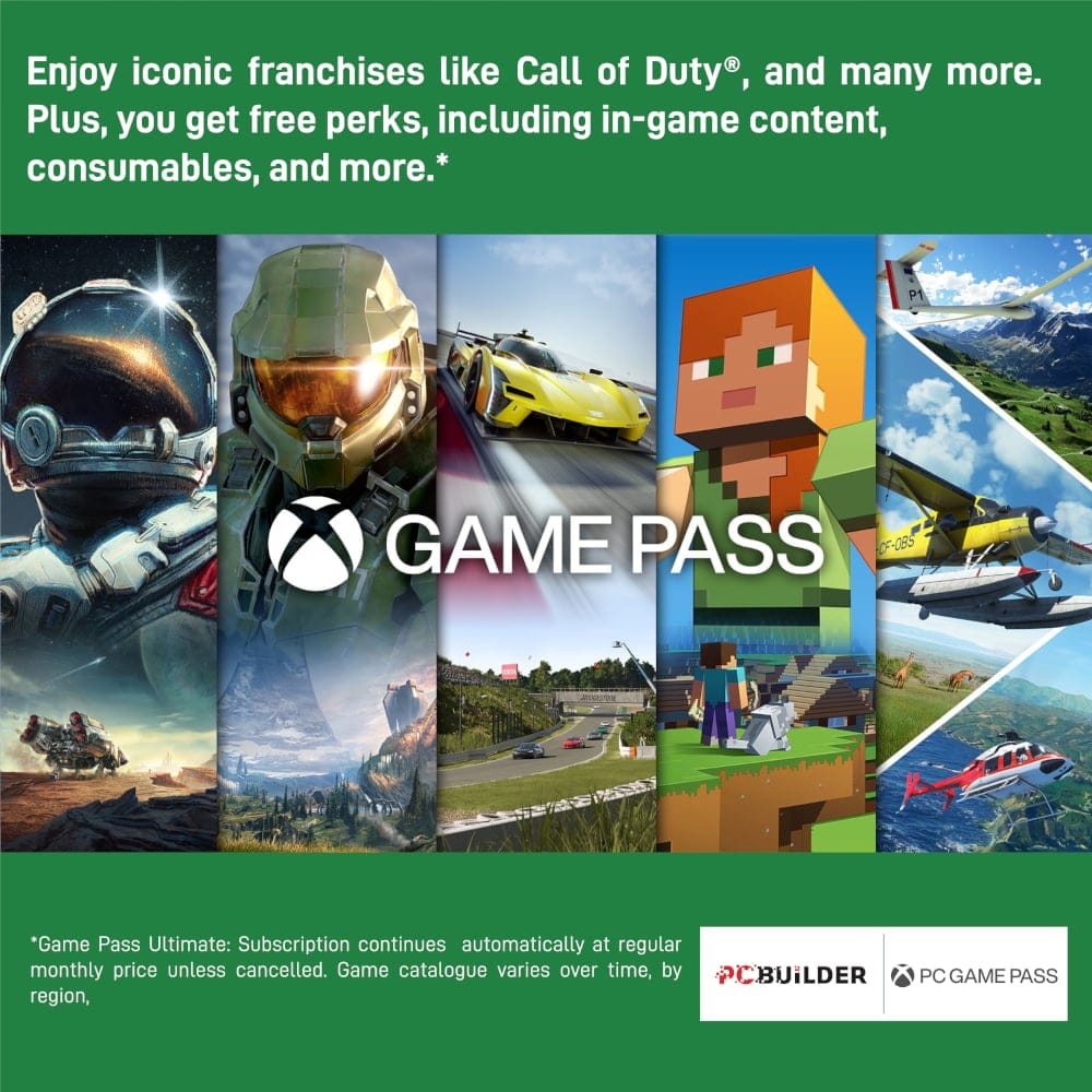 The PCBuilder DEFENDER Windows 11 Gaming PC also includes one month of PC Game Pass including EA Play. Play over 100 high-quality PC games, in various genres such as Halo Infinite, Forza Horizon 5, and Minecraft on your new gaming rig. With new games added all the time, there’s always something new to play from day one.