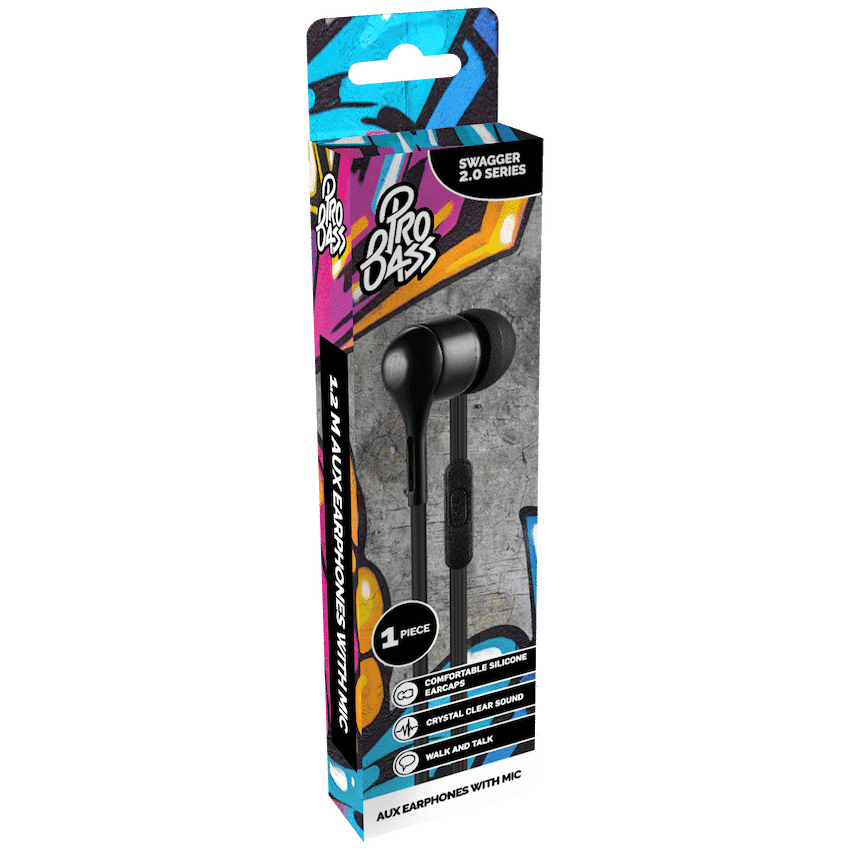 Pro Bass Swagger 2.0 Series - Boxed Auxiliary Earphone with Mic - Black