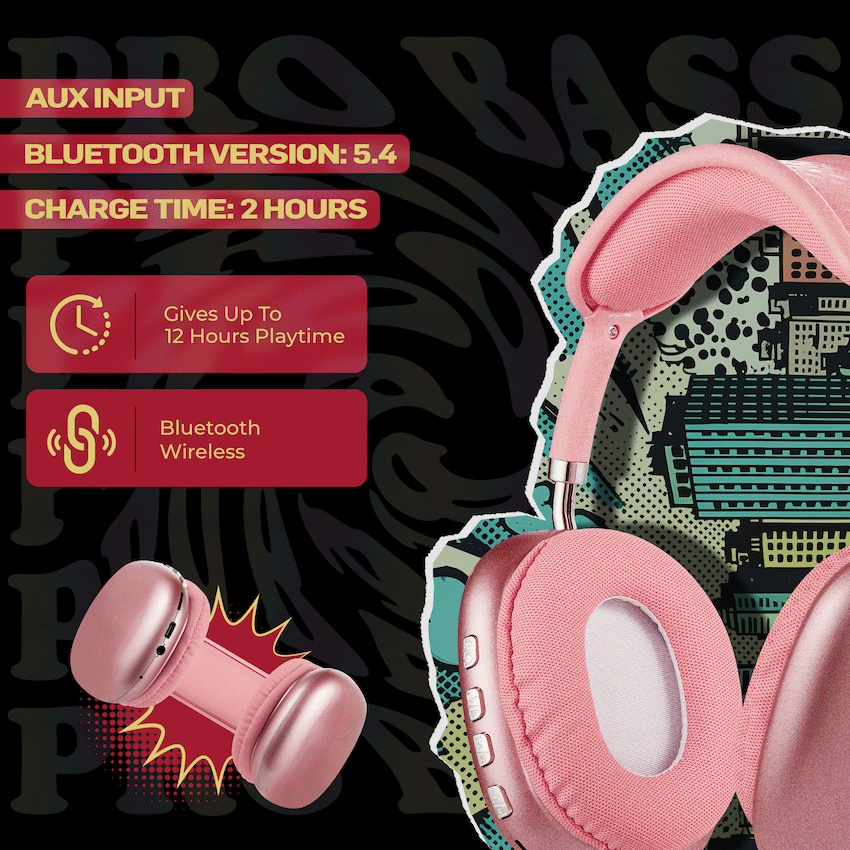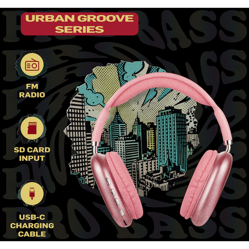 Enjoy immersive sound and all-day comfort with the Pro Bass Urban Groove Bluetooth Headphones. Designed for everyday users who demand performance and flexibility, these over-ear wireless headphones deliver up to 12 hours of playtime, making them perfect for work, travel, or leisure. With Bluetooth 6.0, you get stable connectivity for uninterrupted audio.Need to take calls or activate your voice assistant A built-in microphone lets you enjoy hands-free calling and access to Google or Siri voice control with a simple command. Multiple input options-including Bluetooth, USB-C charging, and an aux input which mean you’re never out of options, even when your battery runs low.Whether you’re streaming music, gaming, or jumping into online meetings, the Urban Groove Series delivers quality sound with a stylish, lightweight design you’ll want to wear every day.Feature Highlights:Up to 12 Hours Playtime – Wireless audio that keeps up with your dayHands-Free Calling – Clear calls with built-in mic for work or chatGoogle & Siri Voice Control – Easy access to smart assistants on the goUSB-C Charging – Fast, reliable recharging with modern compatibilityMultiple Input Options – Use Bluetooth, aux cable, or SD card playback40mm Drivers – Delivers rich audio and detailed soundOver-Ear Fit – Cushioned for comfort during long listening sessionsTechnical Specifications:Bluetooth Version: 6.0Chipset: JLSupported Profiles: A2DP, AVCTP, AVDTP, AVRCP, HFP, SPP, SMP, ATT, GAP, GATT, RFCOMM, SDP, L2CAPBluetooth Range: 10mImpedance: 32?Frequency Range: 20Hz-20kHzSensitivity: 100dBDriver Size: 40mmBattery: 350mAhCharging Time: 1.5-2 HoursCharging Input: DC 5V (USB-C)Playtime: 12 Hours (50% Volume), 10 Hours (100% Volume)What’s in the Box:Pro Bass Urban Groove Series Bluetooth HeadphonesUSB-C Charging CableAux CableInstruction ManualStay wireless, stay connected-wherever your rhythm takes you.