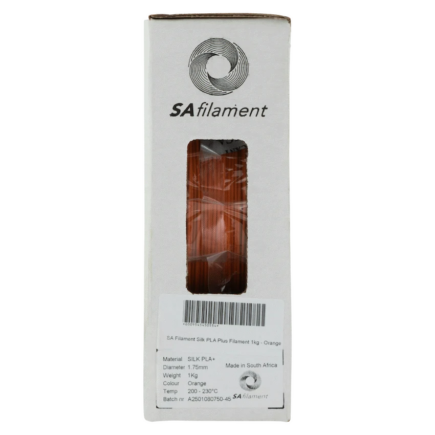 Take your 3D printing to the next level with SA Filament PLA Plus (PLA+), a premium upgrade to standard PLA. Engineered for greater strength, impact resistance, and higher heat deflection, this filament is perfect for functional parts, durable prototypes, and long-lasting prints.Despite its enhanced toughness, PLA Plus retains the user-friendly characteristics of PLA, making it easy to print at standard settings with minimal warping or clogging. Each spool is precision-manufactured to 1.75 mm +/- 0.05 mm for consistent extrusion and smooth layer adhesion.Proudly produced in South Africa, every roll of PLA+ filament is vacuum-sealed for moisture protection, ensuring reliability and top-quality prints straight out of the box.
