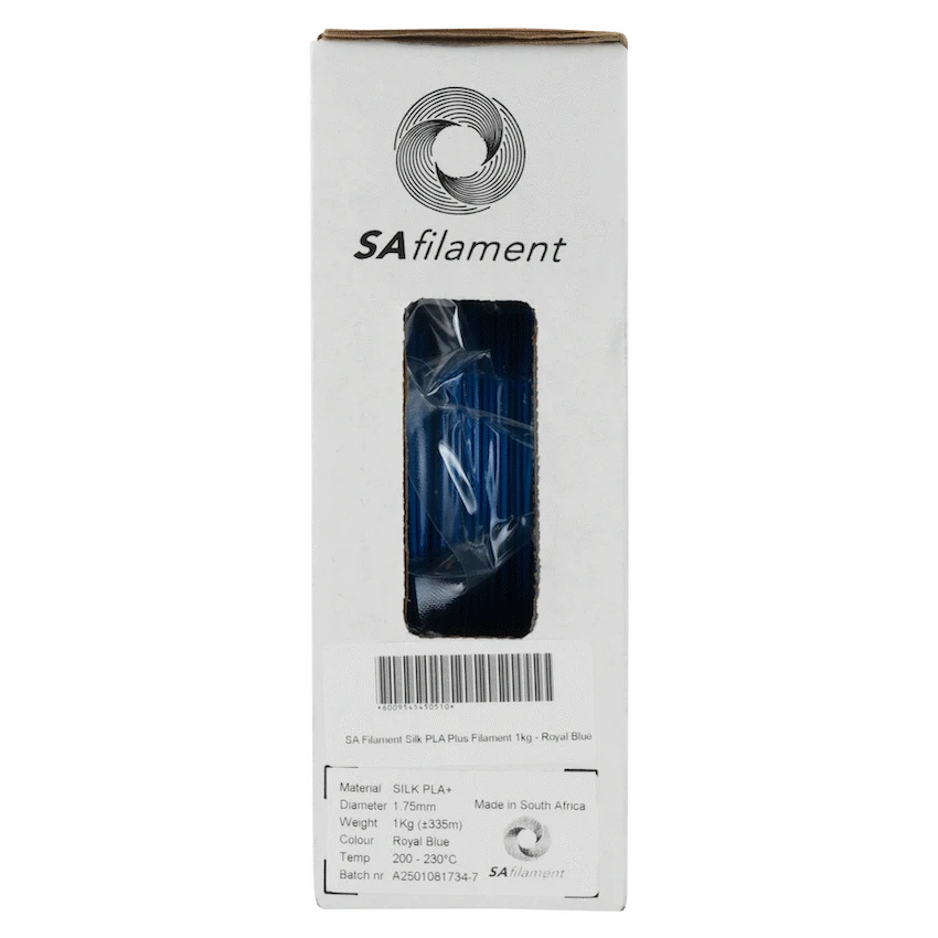 Take your 3D printing to the next level with SA Filament PLA Plus (PLA+), a premium upgrade to standard PLA. Engineered for greater strength, impact resistance, and higher heat deflection, this filament is perfect for functional parts, durable prototypes, and long-lasting prints.Despite its enhanced toughness, PLA Plus retains the user-friendly characteristics of PLA, making it easy to print at standard settings with minimal warping or clogging. Each spool is precision-manufactured to 1.75 mm +/- 0.05 mm for consistent extrusion and smooth layer adhesion.Proudly produced in South Africa, every roll of PLA+ filament is vacuum-sealed for moisture protection, ensuring reliability and top-quality prints straight out of the box
