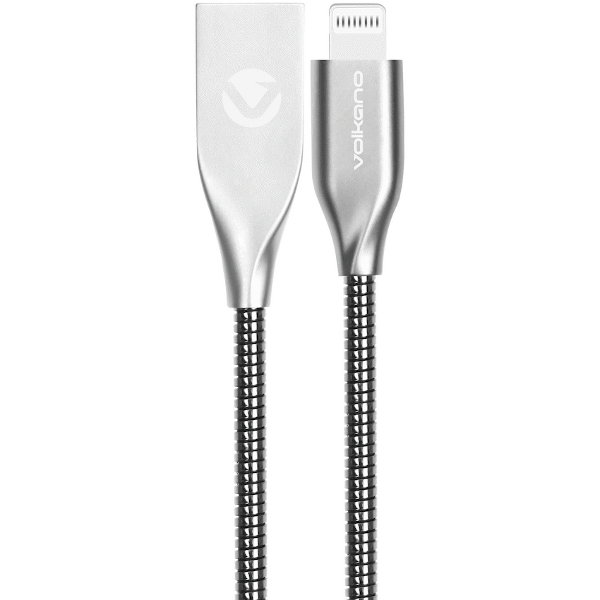 Volkano Iron Series Round Metallic Spring MFI Lightning Cable 6ft – Silver