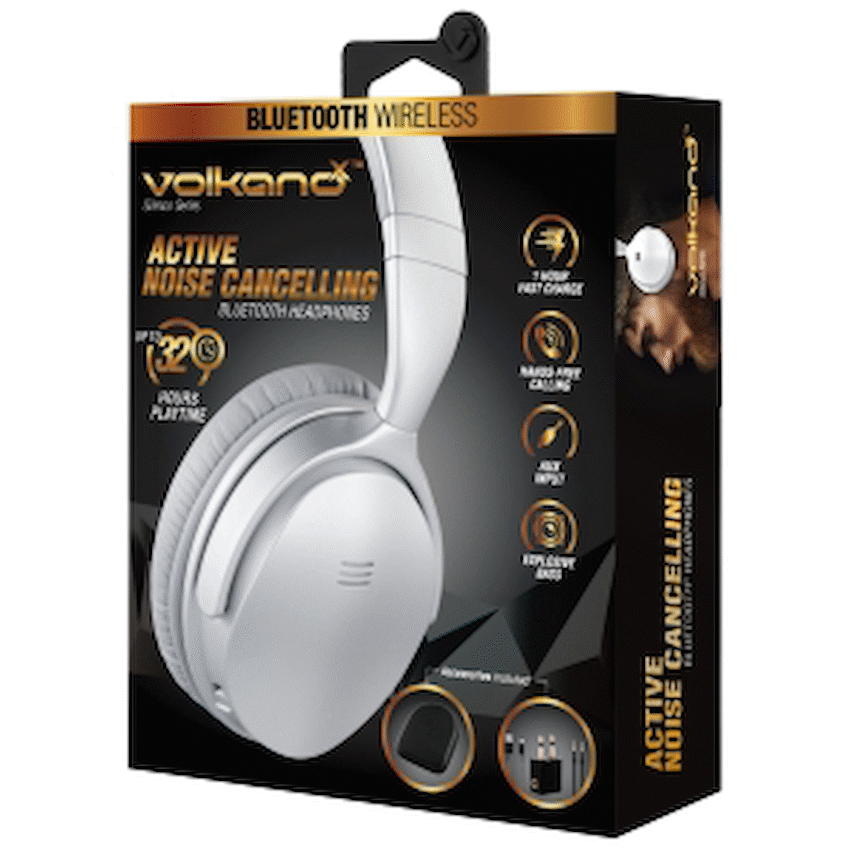 Experience uninterrupted audio with the VolkanoX Silenco Noise Cancelling Bluetooth Headphones-the perfect combination of comfort, clarity, and long-lasting battery life. Whether you’re commuting, working, or relaxing, these premium over-ear headphones with Active Noise Cancelling technology help eliminate background noise for a focused, immersive sound experience.With a built-in microphone for clear hands-free calling, staying connected has never been easier. And with up to 40 hours of playtime, you can enjoy your favourite playlists or podcasts for days without needing to recharge. The compact foldable design makes them easy to carry in the included travel case, while voice assistant compatibility offers smart control at your command.Feature Highlights:Active Noise Cancelling – Reduce ambient noise for immersive listeningUp to 40 Hours Battery Life – Extended playtime to power through your weekClear Hands-Free Calling – Built-in mic ensures crisp call qualityCompact Foldable Design – Easy to store and carry on the goVoice Assistant Ready – Quick access to Siri or Google AssistantUSB-C Charging – Fast, modern charging convenienceComfortable All-Day Fit – Cushioned earcups designed for long sessionsTechnical Specifications:Bluetooth Version: V5.0Chipset: Bluetrum AB5335BBluetooth Range: 10mBattery: 600mAhDriver Size: 40mmFrequency Range: 20Hz-20kHzCharging Time: 2 HoursPlayback Time: Up to 40 Hours (ANC off, 50% volume)Impedance: 32?Sensitivity: 105dBWhat’s in the Box:VolkanoX Silenco Series ANC Bluetooth HeadphonesUSB-C Charging CableAux CableAeroplane Stereo AdapterCarry CaseInstruction ManualTake your sound experience to the next level with comfort, clarity, and all-day power.